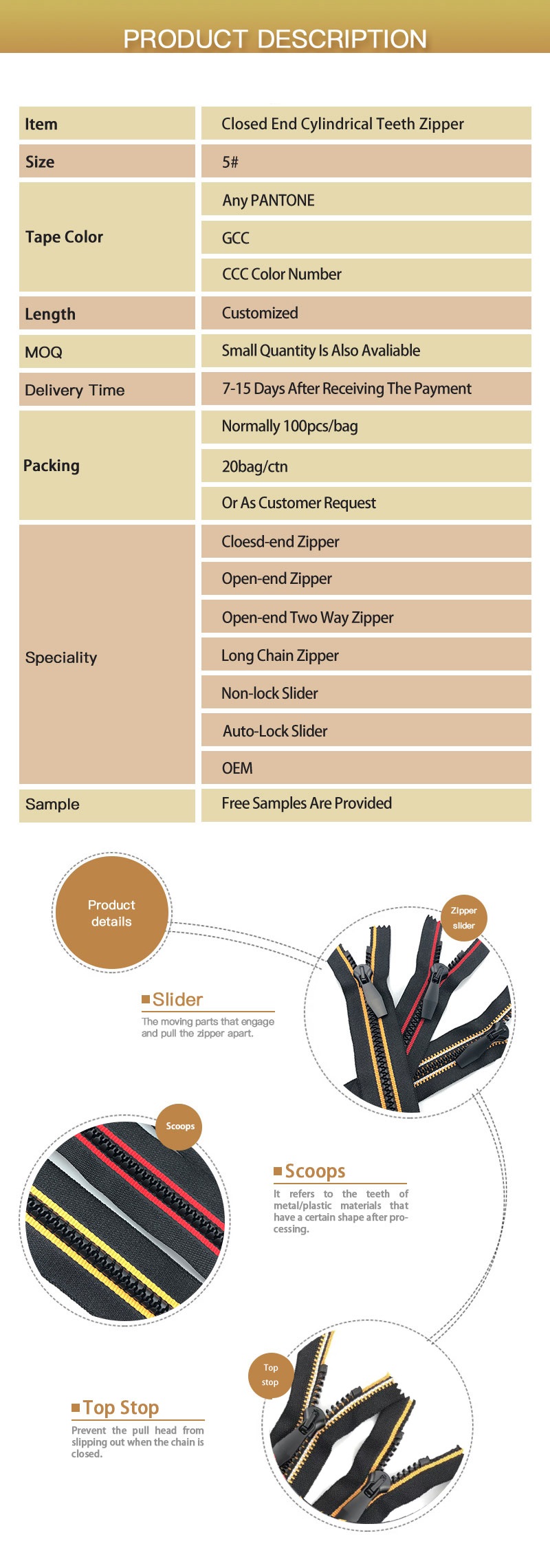 special plastic zipper